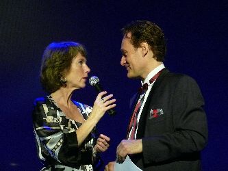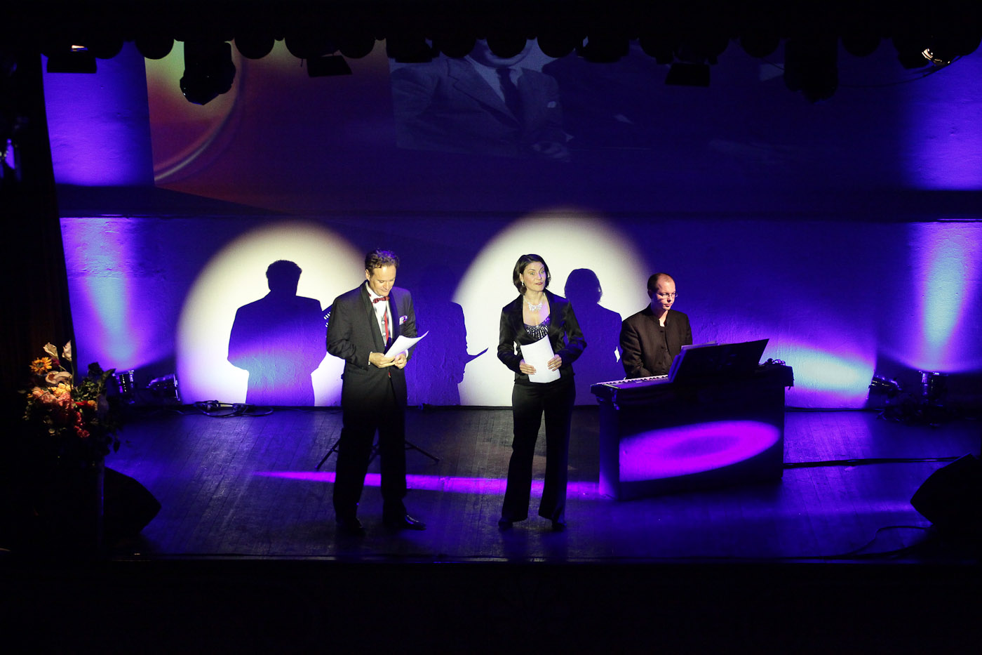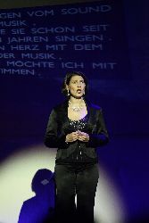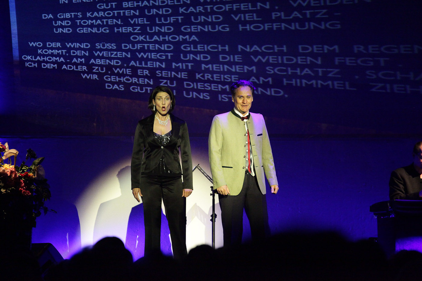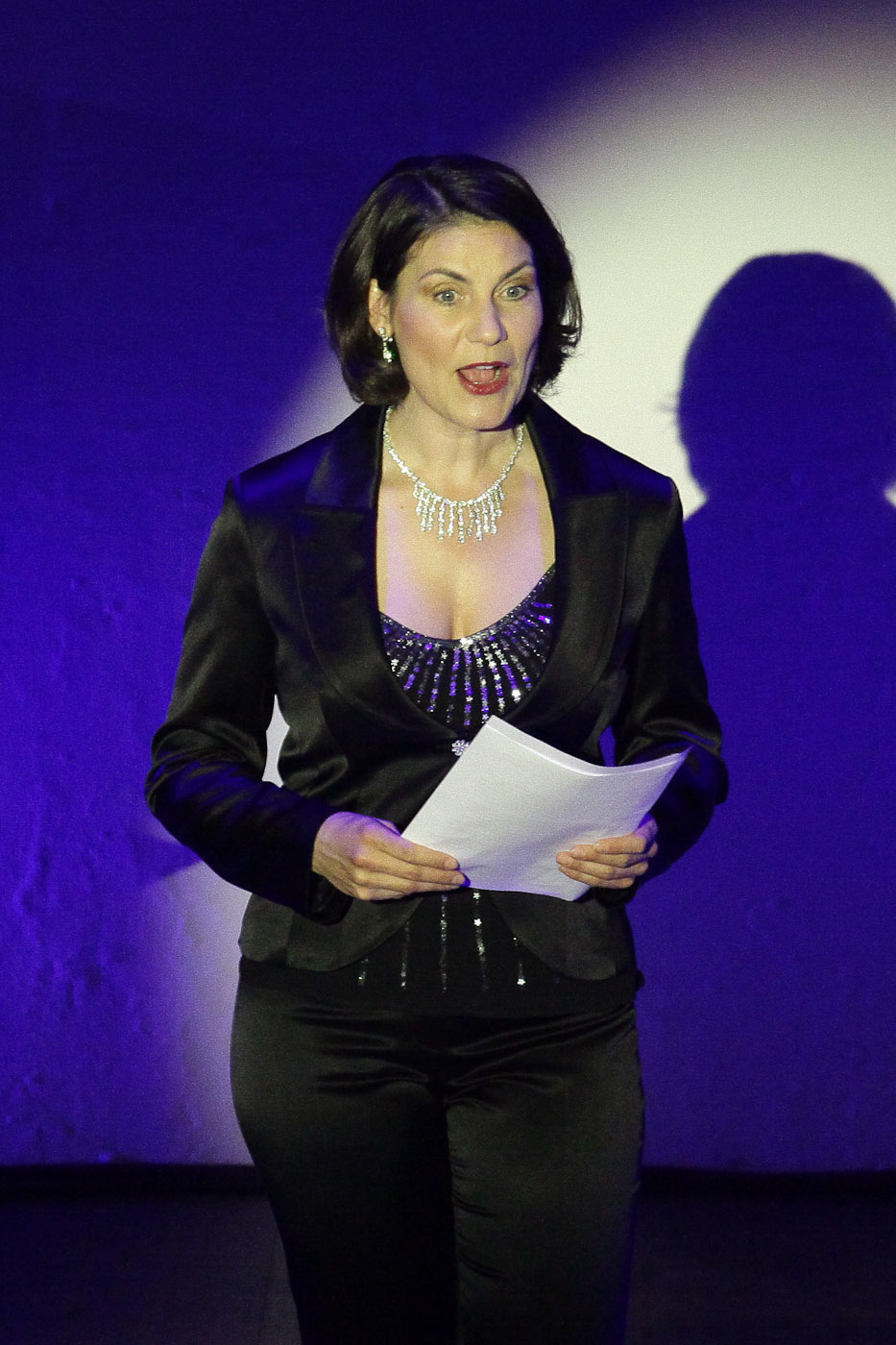 Barbara Rett in Moderation anlässlich der Premiere Broadway Impressionen