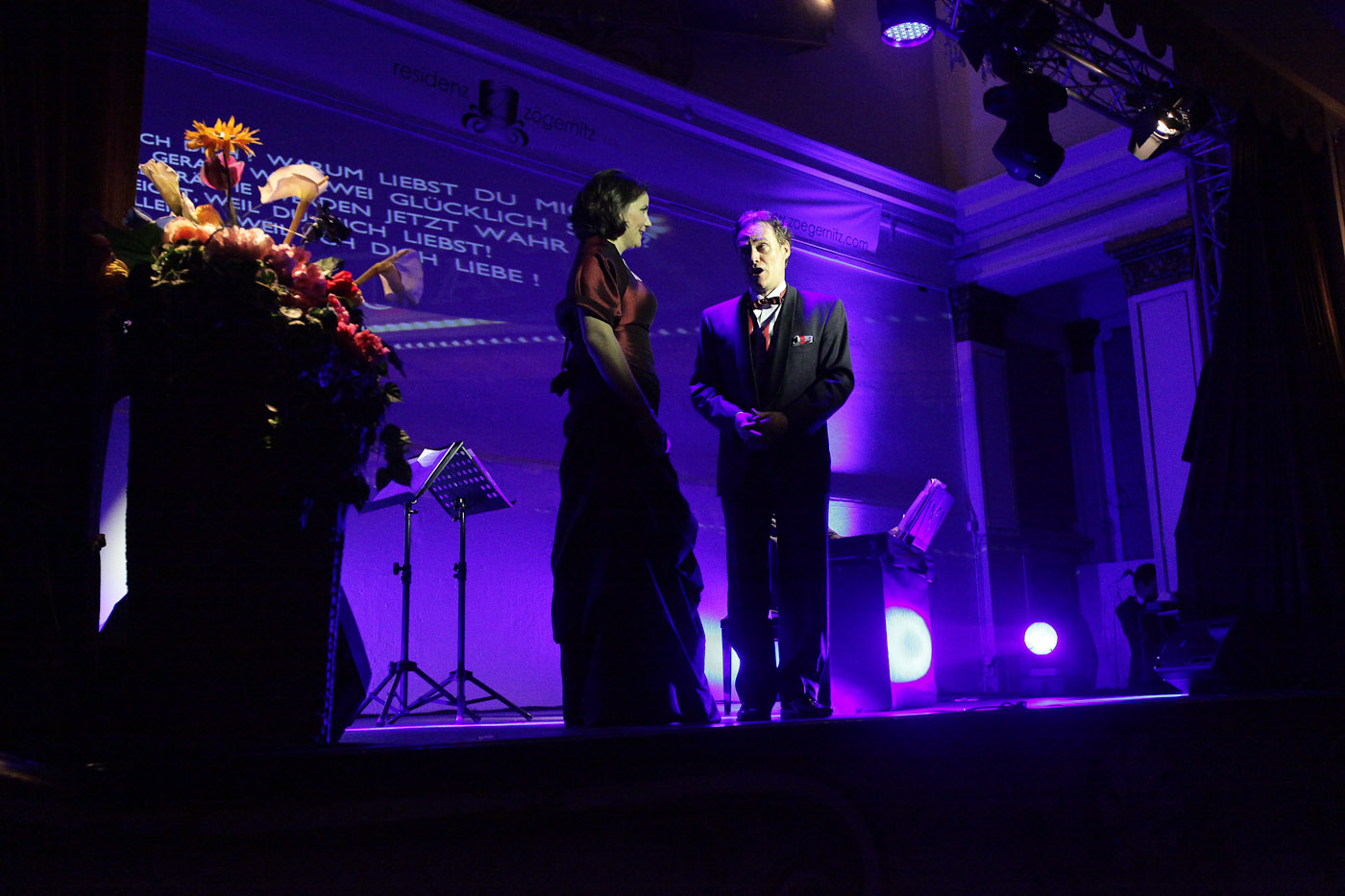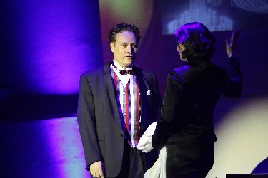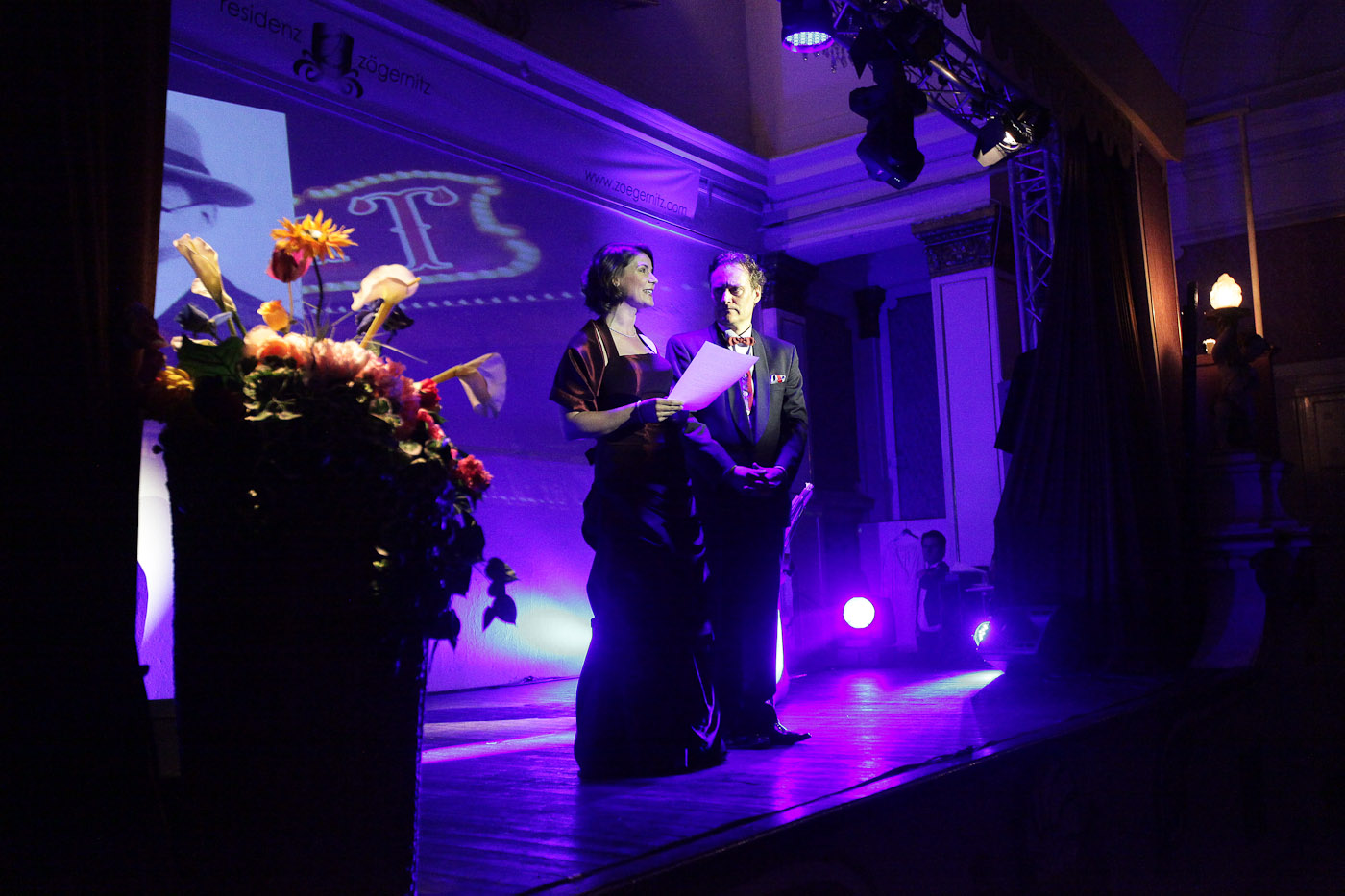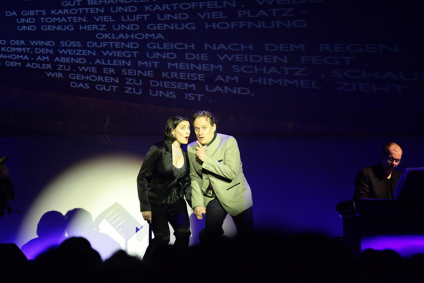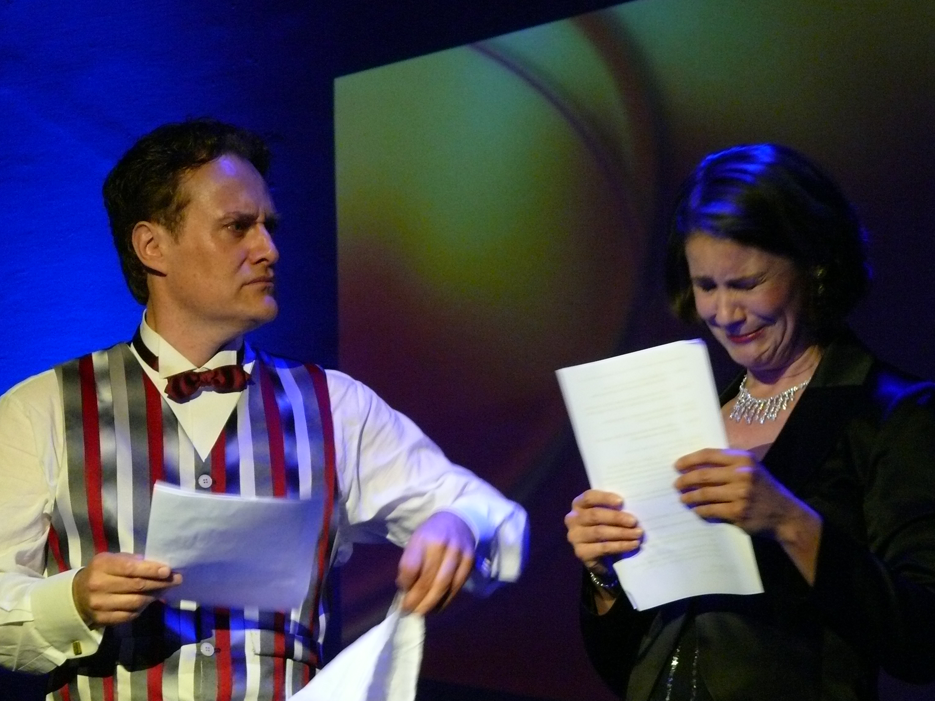 Barbara Rett in Moderation anlässlich der Premiere Broadway Impressionen